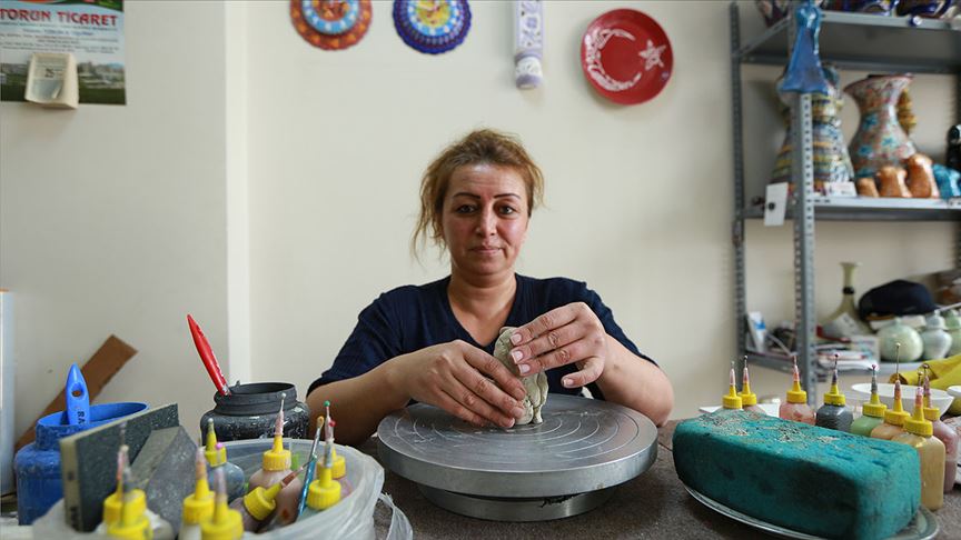 "Kütahya'da 25 yıl önce çini tabak ve seramikler üzerine işleme çizerek çiniciliğe başladım. Kütahya'da her ev hanımı çinicilik işinden anlar. Önceden benim de hobimdi. Çocukken ileride atölye kurup kendi işimi yapmak istiyordum. Hibe desteği ile atölye açtım ve kendi işimi kurdum hayalimi gerçekleştirdim. Atölyeye fırın aldım. Burada çini tabak, abajur, tabak, kaftan, vazo, şamdan, süs eşyaları gibi çeşitli çinileri üretiyorum."