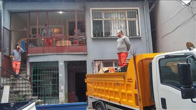 Daha sonra evi boşlatmaya başlayan belediye ekipleri tuvaleti, banyosu, mutfağı ve suyu bulunmayan böcek ve kötü kokuların çevreye yayıldığı evi temizlerken zor anlar yaşadı.