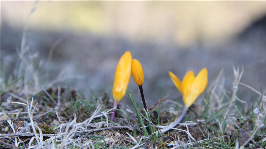 İlçede genellikle mart ayında açan çiğdemler, kurak geçen kış mevsiminde etkili olan güneş ışıkları nedeniyle gün yüzüne çıktı.