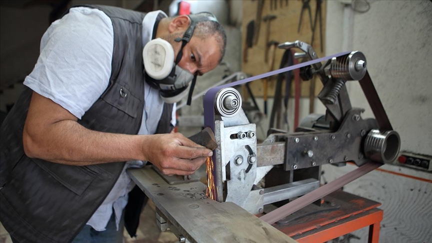 Ustalar, bilemenin yanı sıra vatandaşların getirdiği kırık bıçakları onarıyor.