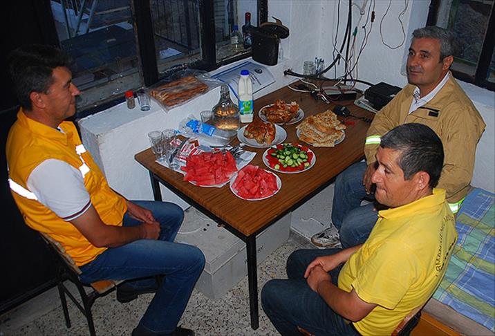Dağdaki kulede soba ateşiyle ısınarak iftar yapıyorlar