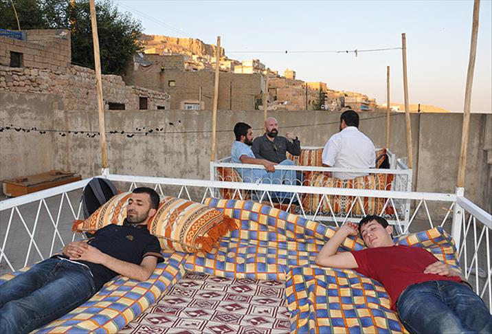 Bölgede klimasız, kapalı mekanlar yerine doğal serinlikte vakit geçirmek isteyenler, evlerinin damında kurdukları sedirlerde uyumayı tercih ediyor.