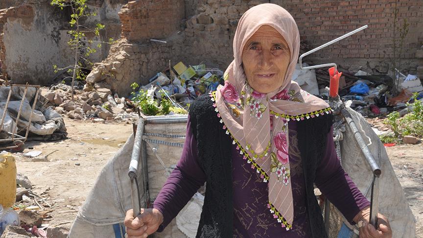 Eşi Hüsnü Gül (66) kolon kanseri olduğu için çalışamayan, yetişkin 7 çocuğu olan 61 yaşındaki Gül, romatizma ve bel fıtığı rahatsızlığına rağmen, "çek çek" diye tabir edilen el arabasıyla çöp konteynerlerinden karton topluyor.