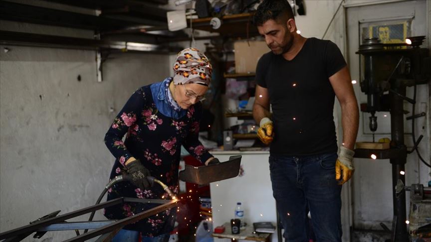 Sakarya'da yaşayan iki çocuk annesi Şura Kargı, eşine bir saatliğine yardım etmek için gittiği demir doğrama atölyesinde işi sevince eşinin kalfası oldu.