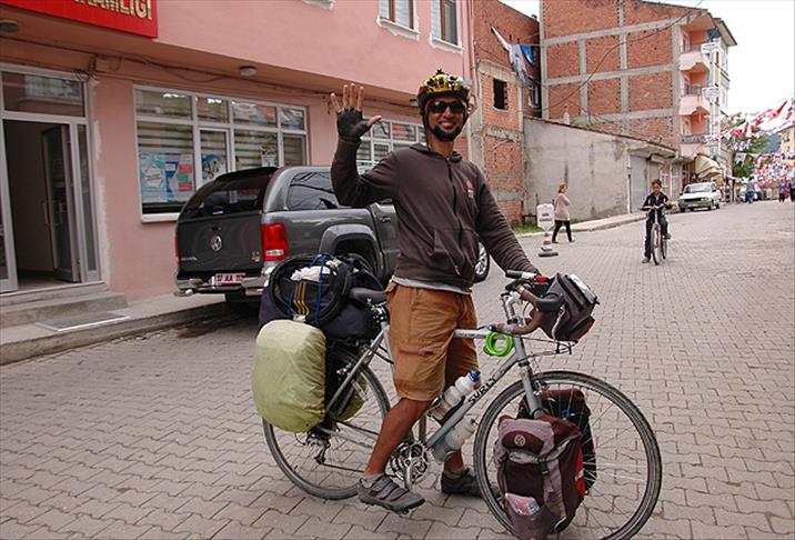Azerbaycan'dan "demokrasi" için 20 bin kilometre pedal çevirip Güney Afrika'ya gitmeyi planlayan 31 yaşındaki gazeteci Yaşar Xudiyel, Kastamonu'nun Hanönü ilçesine geldi.