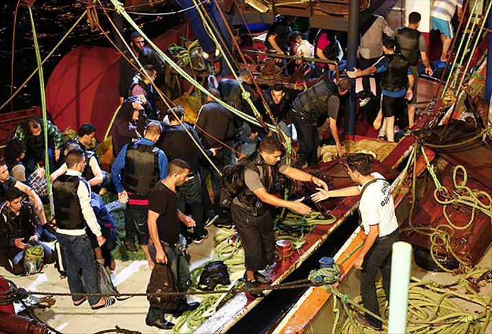 Kaçaklar, balıkçı teknesiyle Çeşme Limanı'na getirilerek Sahil Güvenlik ekiplerine teslim edildi.