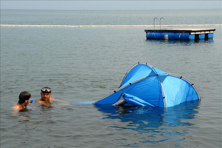 Arkadaşı Emin Ketenci'yi de yanına alarak oksijen tüpüyle dalıp çadırda oturduklarını anlatan Koçal, ''Suyun altında tüpün yettiği 3 saat boyunca serinliyoruz, kafamızı dinliyoruz'' dedi.