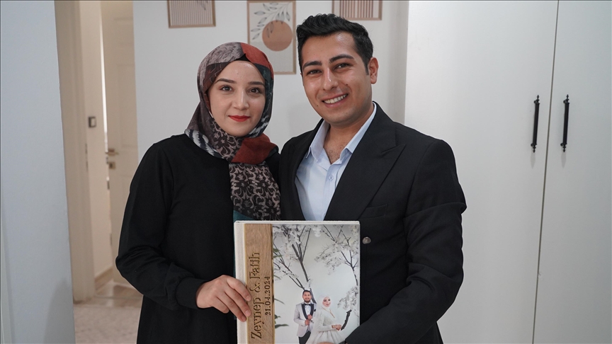 Gaziantep'te yaşayan Fatih ve Zeynep Kurt çifti, 6 Şubat 2023'teki depremlerin en fazla etkilediği Kahramanmaraş, Hatay, Malatya, Adıyaman ile Gaziantep'in Nurdağı ve İslahiye ilçelerinde hayata geçirilen "Evlenecek Gençlerin Desteklenmesi Projesi" kapsamında aldıkları evlilik kredisiyle dünya evine girdi.