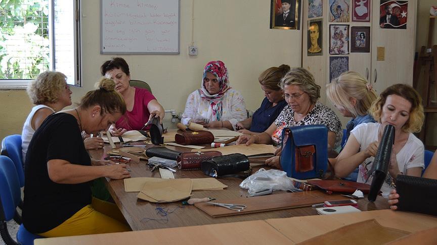 Balıkesir’in Ayvalık ilçesinde Halk Eğitimi Merkezi (HEM) Müdürlüğü ile İŞKUR tarafından ortaklaşa açılan Deri Çanta Yapımı Kursu'na katılan kadınlar, ham derileri kullanarak şık tasarımlı ve her biri adeta birer sanat eseri konumundaki çanta üretiyor.