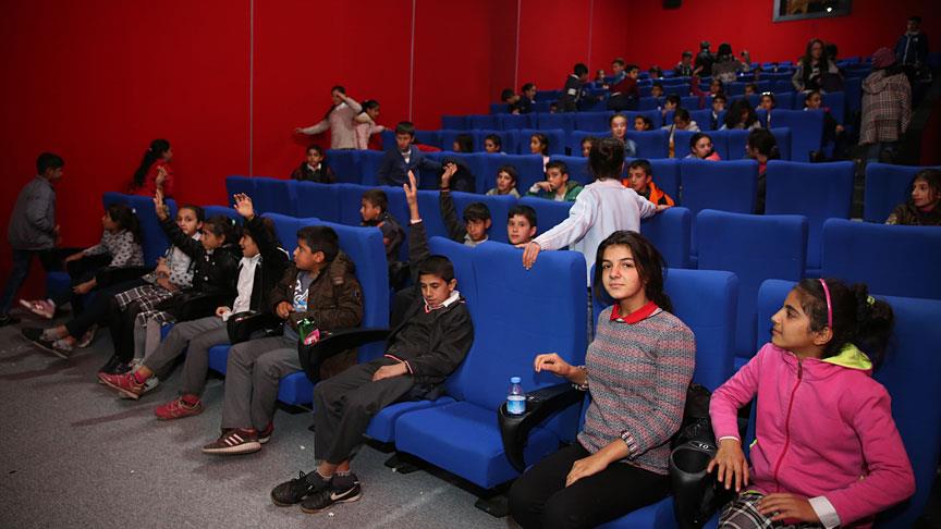 Mardin'de kırsal mahallelerde yaşayan aralarında Suriyelilerin de yer aldığı dezavantajlı öğrenciler, ilk kez sinemada film izlemenin mutluluğunu yaşıyor.