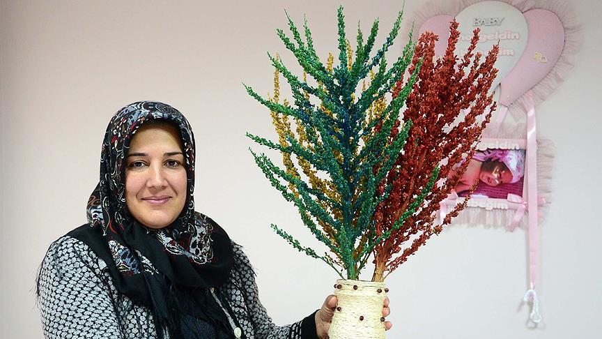 "Atölyemizde gerek çocuk odalarını gerekse evi tamamlayan dekorasyon, duvar üniteleri, çiçekler, vazolar ve buna benzer birçok süs eşyası yapıyoruz. Buradaki kadınlar da çok istekli ve heyecanlılar. Her gün karşılaştığımız, üzerine bastığımız ve hiç aklımıza gelmeyecek malzemeleri atölyemizde işliyoruz. Mesela dikeni koparıp atölyemizde değerlendiriyoruz. Dikenle vazolarımıza çiçek yapıyoruz."