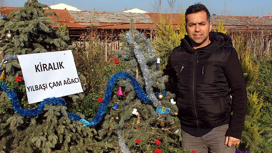 Doğasever işletmeci Akdüz, yılbaşı kutlaması için çam ağacı süslemek isteyenler için "ağaç kiralama" hizmetini bu yıl da sürdürüyor.