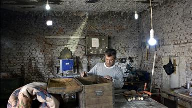 Kayapa Sanayi Bölgesi'ndeki bir ahşap imalat firmasının sahibi Yalçın Toy, fabrikanın üretim bölümünü gören pencereye açılan kapıdan zaman zaman çalışanlarını izliyor.
