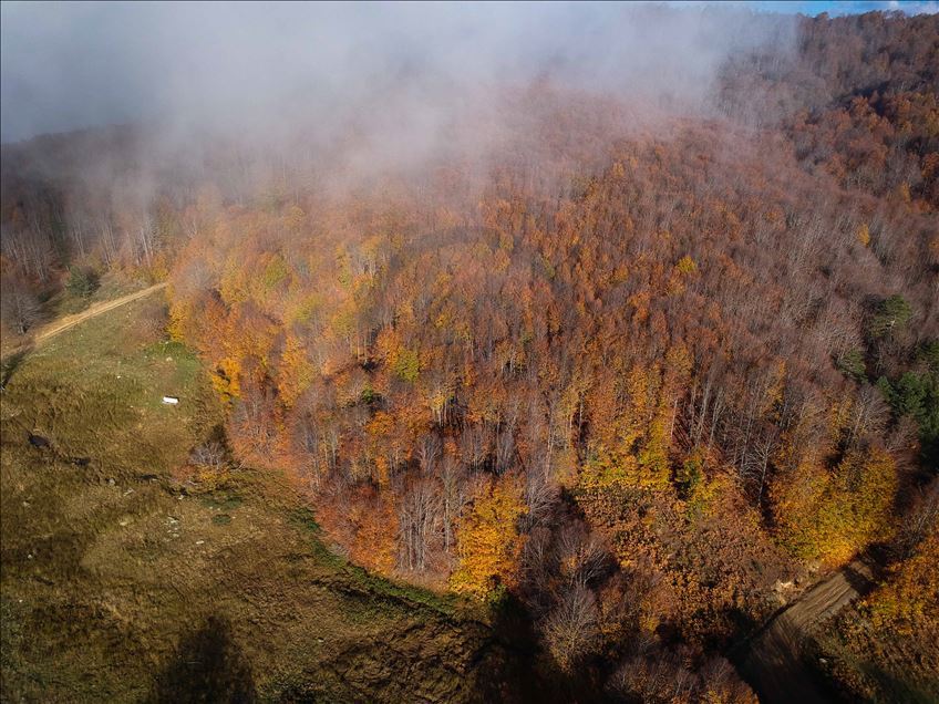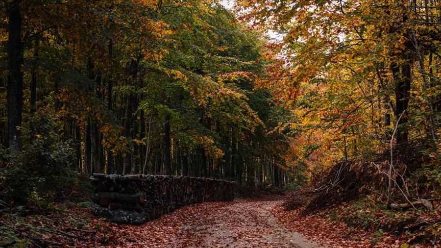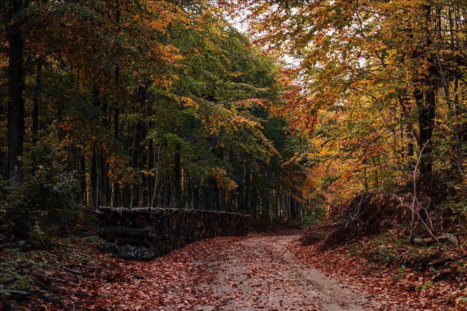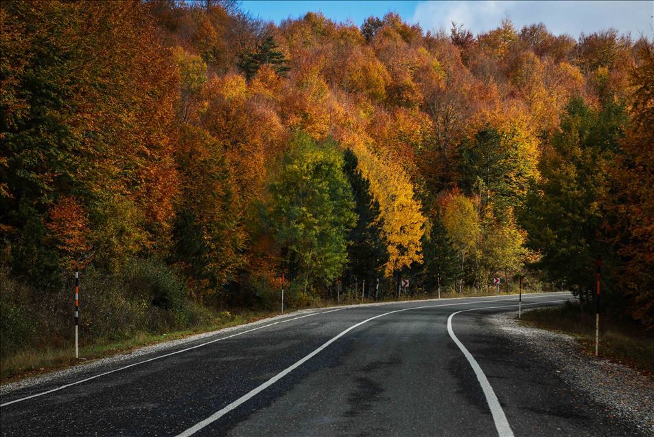 İnegöl-Domaniç kara yolunda bulunan ormanlık alan büründüğü sarı, yeşil ve kızıl renklerle görenlere görsel bir şölen sunuyor.