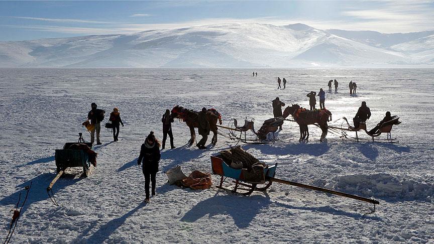 Tamamen donan ve buz kalınlığı yer yer yarım metreye varan göl, çok sayıda turisti ağırlıyor.