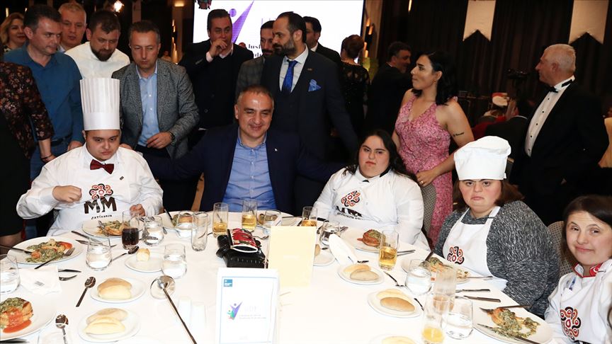 Konuşmaların ardından, 26 haftalık aşçılık eğitimi sonrası mezuniyete hak kazanan down sendromlu gençler diplomalarını Bakan Ersoy'dan aldı.