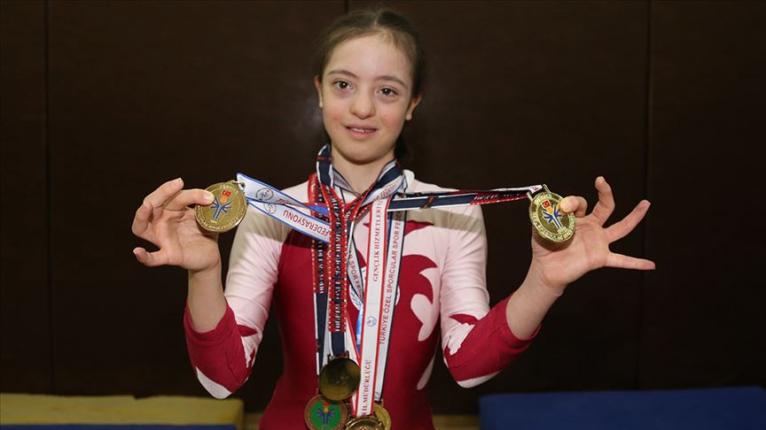 Erzurum'da 5 yıl önce başladığı jimnastikte, annesi ve antrenörünün desteğiyle Özel Sporcular Türkiye Jimnastik Şampiyonası'nda 4 kez birincilik ve yaşından çok madalya kazanan 11 yaşındaki Sümeyye Uruk, azmi ve başarılarıyla adından söz ettiriyor.