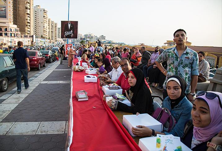 Mısır'ın Akdeniz kıyısındaki İskenderiye kentinde 2,7 kilometre uzunluğunda kurulan iftar sofrasıyla dünyanın en uzun yemek sofrası rekoru kırıldı.