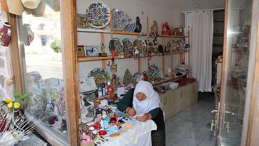 Aksaray'ın Güzelyurt ilçesinde yaşayan Dürdane Özmel, halk eğitim kursunda öğrenip yaptığı yöreye özgü el işçiliği ürünlerle, hem geçimini sağlıyor hem de ilçe turizminin gelişmesine katkıda bulunuyor.