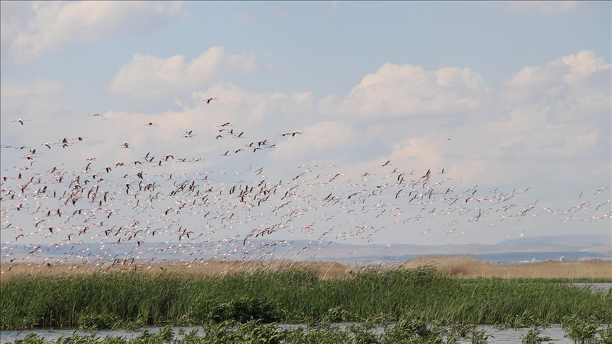 Eber Gölü rehberi Kadir Ateş, gazetecilere, flamingolarla gölün daha da hareketlendiğini belirterek, "Baharın simgesi flamingolar, çok güzel görüntü veriyor. Fotoğraf tutkunları da burayı tercih ediyor." dedi.