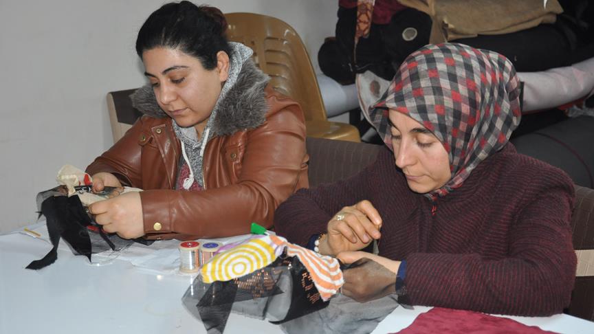 Adıyaman Valiliği ve Halk Eğitimi Merkezince Sosyal Destek Programı (SODES) kapsamında açılan atölyede 6 aydır eğitim alan kadınlar, ürettikleri çantaları tel kırma yöntemiyle ilmek ilmek süslüyor.