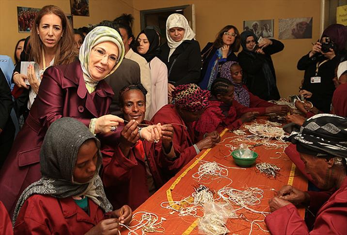Daha sonra aidsli kadınlar yararına faaliyet gösteren bir derneği ziyaret eden Emine Erdoğan, buradaki kadınlarla bir süre sohbet ettikten sonra, atık maddelerin geri dönüşümünden sağlanan malzemeler ile yapılan takı ve süs eşyalarını inceledi. Emine Erdoğan, kızı Sümeyye Erdoğan'a hediye aldı.