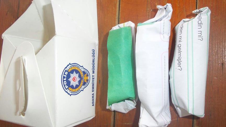 Adana'da polisin şüphe üzerine durdurmak istediği bir kişinin yola attığı ve "Polis Haftası" kapsamında dağıtıldığı belirtilen şeker kutusunda esrar ele geçirildi.