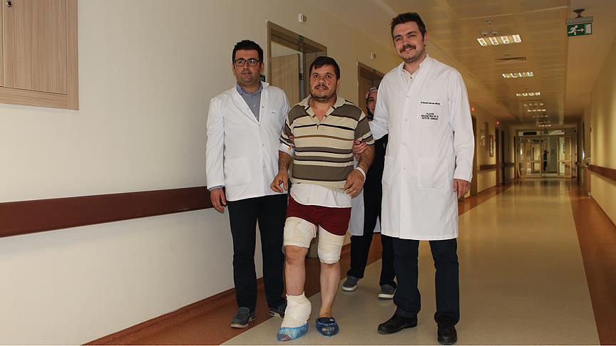 "Sağ olsun bize güvendi. 6 saatlik bir ameliyatla uyluktan aldığımız dokuyu ayak bileğindeki damarlarla mikrocerrahi yöntemi kullanarak birleştirdik. Bir nevi organ nakli. Dokunun uyumu açısından kritik 10 günlük dönemi atlattık. Hastamız muhtemelen birkaç ay içinde değnek kullanmadan yürüyebilecek."