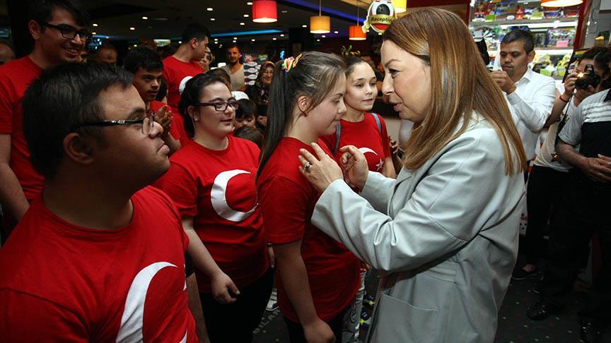Çalık, kentteki bir alış veriş merkezinde bulunan bowling salonunda bedensel engelli ve down sendromlu çocuklarla bir araya geldi.