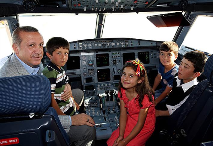 Cumhurbaşkanı adayı ve Başbakan Recep Tayyip Erdoğan, Türk Hava Yolları (THY) reklam filminde oynayan Korkutelili çocuklarla bir araya geldi.