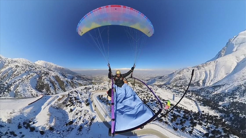 Daha sonra ranzalı paramotoru Erzincan Ergan Dağı Kış Sporları ve Doğa Turizm Merkezi'ne çıkaran iki arkadaş, buradan uçuşa geçti.