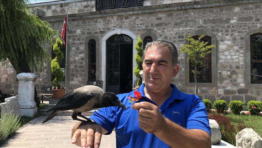 Amasra Müzesi'nin yanındaki iş yerinde beslediği karganın ilginç bir olaya da imza attığını aktaran Genç, müzede tarihi eserlerin temizliği yapıldığı sırada karga Cafer'in bir domuz dişi fosilini kaçırdığını söyledi.