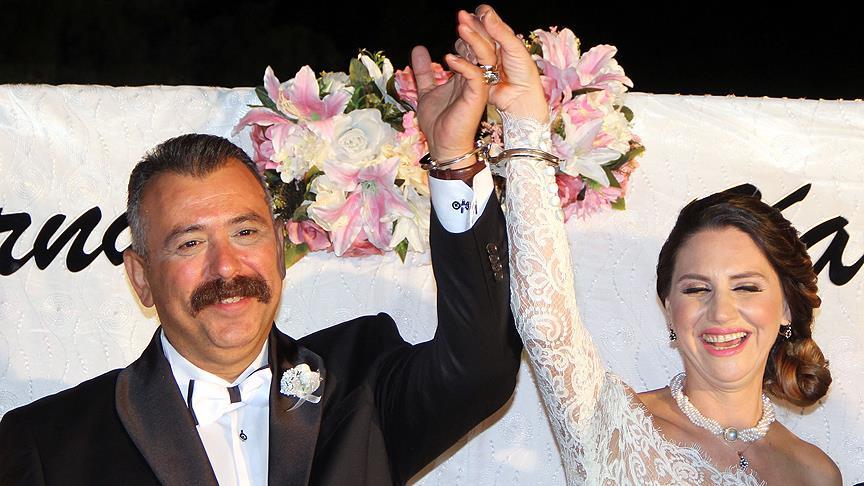 Manisa'da Cumhuriyet Savcısı olarak görev yapan Kazım Özsoy ile gelin Üstün'e nikah töreninde İl Emniyet Müdürü tarafından kelepçe takıldı.
