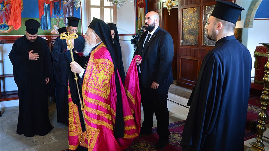 Fener Rum Patriği Bartholomeos, Çanakkale'nin Gökçeada ilçesinde Meryem Ana anısına düzenlenen ayini yönetti. ( Burak Akay - Anadolu Ajansı )