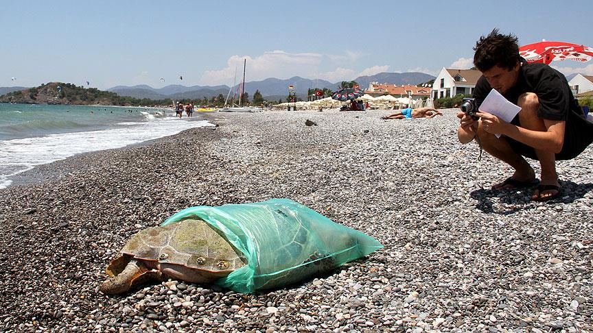 Muğla'nın Fethiye ilçesindeki sahilde, "caretta caretta" cinsi ölü deniz kaplumbağası bulundu.