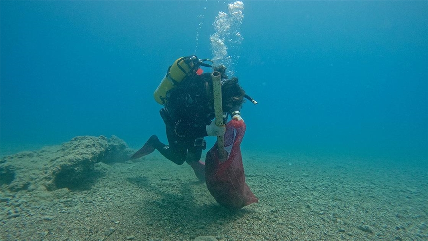 Yaklaşık 1 saat süren çalışmayla, denizden lastik, metal, plastik ve cam gibi atıklar çıkarıldı. Dalgıçların deniz dibi temizliği, su altı kamerasıyla görüntülendi.