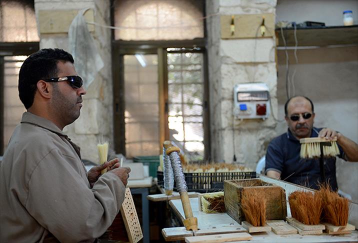 Kudüs'ün sur içinde kalan bölümü Eski Şehir'de temizlik fırçası imalathanesinde çalışan görme engelli Filistinliler, zor şartlar altında hayata tutunma mücadelesi veriyor.