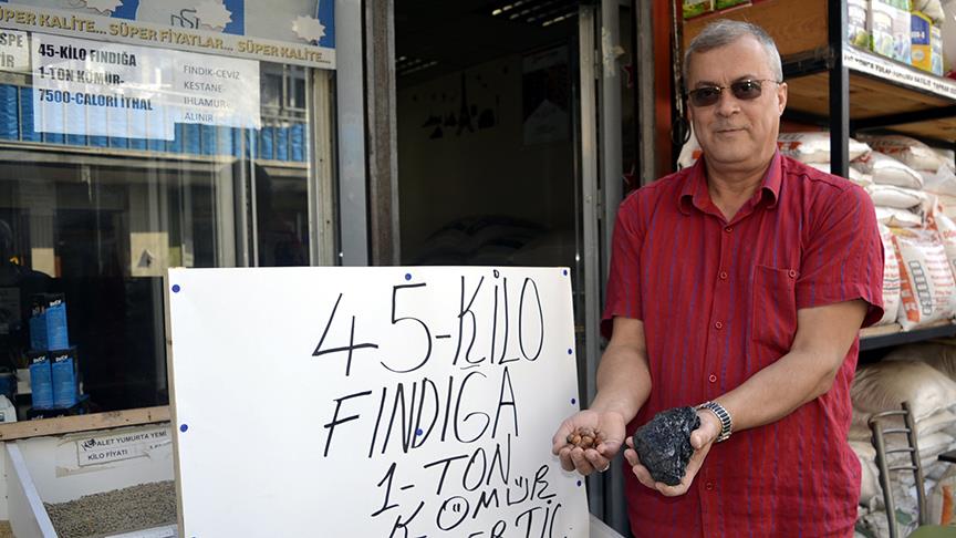 Zonguldak'ın Alaplı ilçesinde bir esnafın, fındık fiyatlarının düşmesinin ardından müşterilerine yönelik "fındık getirene kömür ve beyaz eşya" kampanyası görenleri şaşırtıyor.