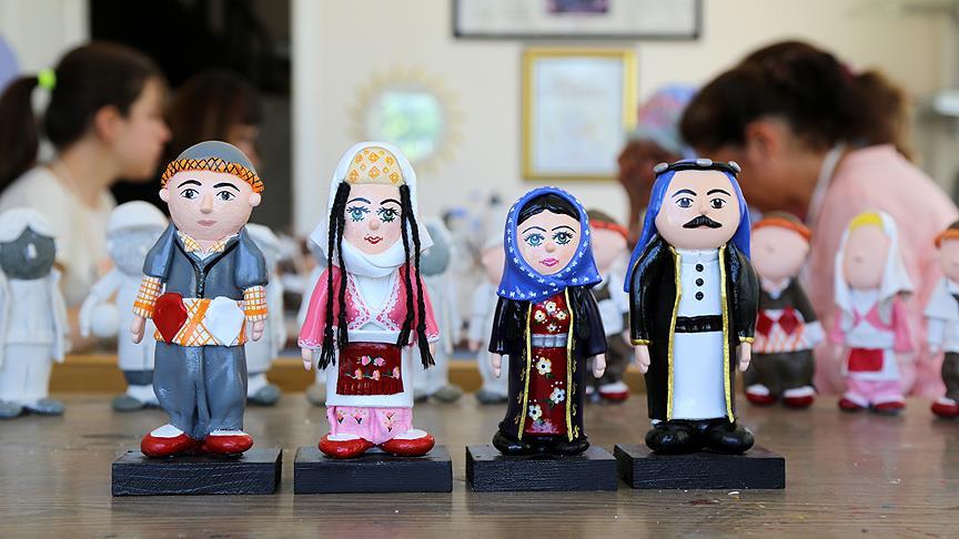 Tutkalla yapıştırdıkları taşları seramik hamuruyla kaplayan, ardından da boya ve vernikle süsleyen kadınlar, taşları yöresel kıyafetli bebeklere dönüştürüyor.