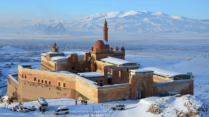 Türk mimarisinin en güzel örneklerinden Ağrı'nın Doğubayazıt ilçesindeki İshak Paşa Sarayı, yerli ve yabancı ziyaretçilerini adeta kendine hayran bırakıyor.