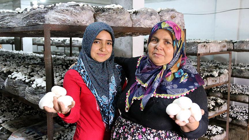 Hatay'ın Antakya ilçesinde yaşayan Atike Bebek ile gelin adayı Zeynep Duran, birlikte kültür mantarı yetiştiriciliğine başladı.