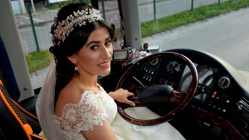 Gelinlikle otobüs şoförlüğü yaptı