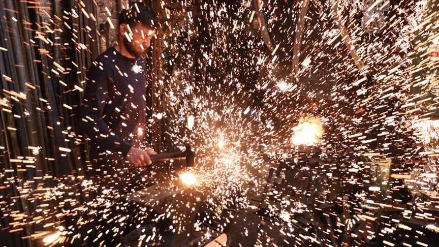 Ali Osman Ünal, AA muhabirine yaptığı açıklamada, 11 yaşındayken babası ve amcasının yanında çalışarak mesleğe adım attığını, 15 yıldır demir döverek kılıç ürettiğini söyledi.