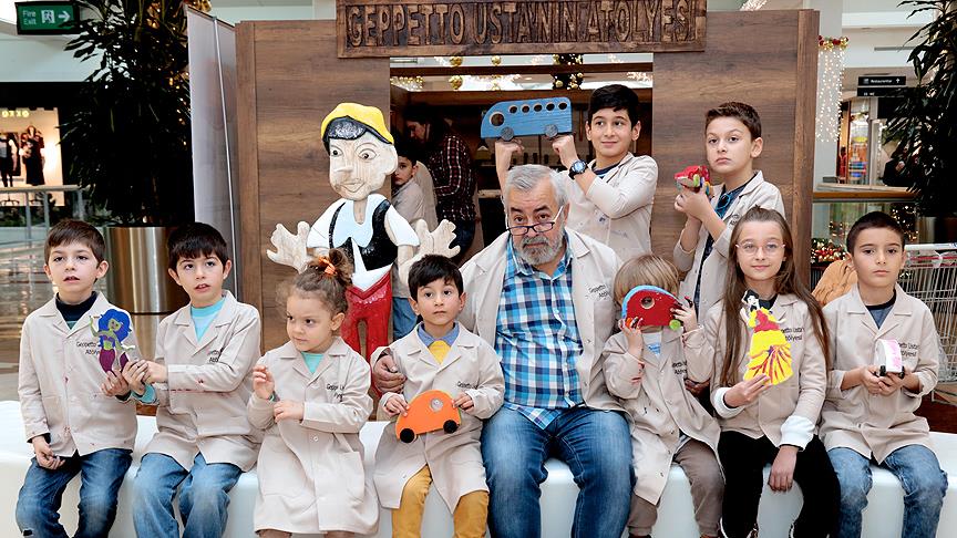 "Geppetto Usta'nın Atölyesi"nde, alanında uzman ahşap oyma ustası da çocuklara bu konuda yardımcı oluyor.