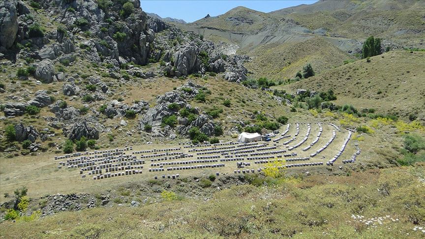 Adıyaman'ın Gerger ilçesinden gelen gezginci arıcı Ahmet Tutuş, 860 kovanı bulunduğunu, kovan başına ortalama 20-25 kilogram bal aldığını belirtti.