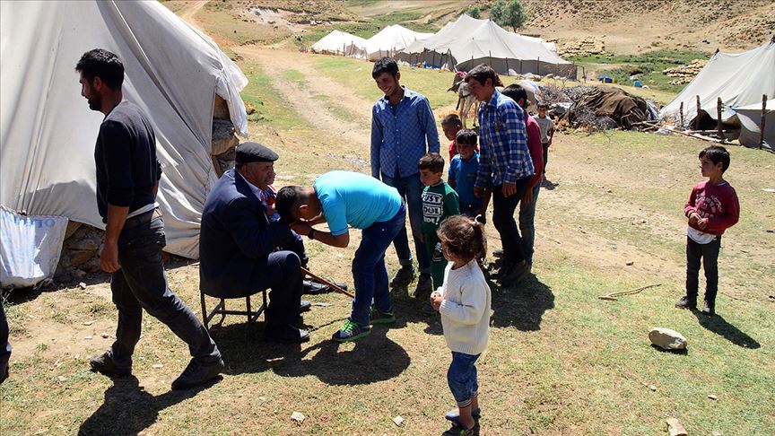 Bu yıl Kurban Bayramı'nı kentteki Duap Yaylası'na kurdukları 7 çadırda karşılayan göçerler, bayram namazını kıldıktan sonra kurban kesti.