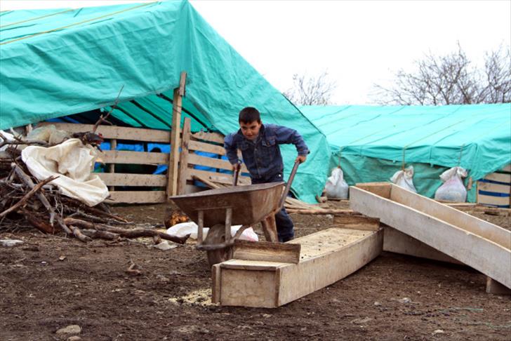 Üç erkek kardeş, Şahaplı köyü kırsalında merada brandadan hazırladıkları çadırlarda kalırken, 3'ü çocuk 8 kişilik bir aile de, ilçe merkezi kırsalında kiraladıkları merada, brandadan eklenti yapılan harabe haldeki eski bir evde yaşıyor.