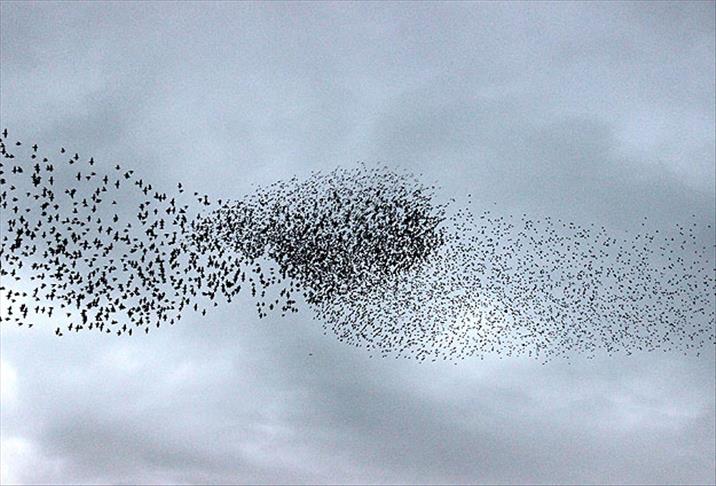 Gökyüzünde 10-15 dakika içinde binlercesi bir araya gelen kuşlar, koreografiyi andıran görsel şölene imza atıyor.