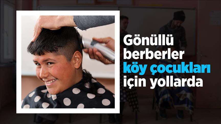 Iğdır'da fotoğraf sanatçısı Özcan önderliğinde internetten haberleşerek bir araya gelen gönüllü berberler, köy köy dolaşarak çocukları tıraş ediyor.