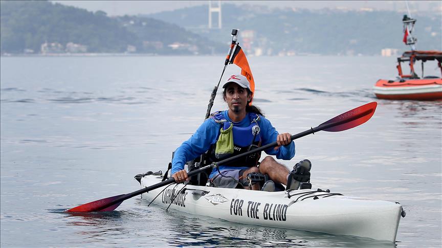 ABD'de öğretmenlik yapan görme engelli Ahmet Üstünel, kanosuyla Beykoz'dan Sarıyer'e geçerek kıtalar arası yolculuk yaptı.